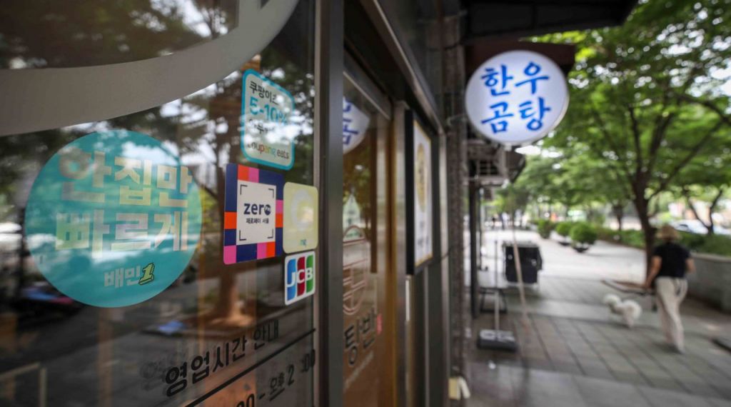 배달의민족이 외식업주가 부담하는 중개 수수료를 오는 8월부터 기존 6.8%에서 9.8%(부가세 별도)로 인상한다고 밝힌 가운데 11일 서울 한 음식점에 배달의 민족 스티커가 붙어 있다. 사진=강진형 기자aymsdream@