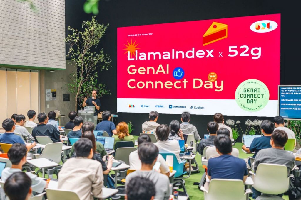GS그룹의 디지털 전환(DX)을 주도하는 혁신 커뮤니티 '52g'(5pen 2nnovation GS)와 라마인덱스가 공동 주관한 행사는 글로벌 AI 엔지니어들이 모여 LLM 활용 노하우를 공유하고 협력하기 위해 마련됐다. LLM은 인공지능 언어모델 중 하나로, 거대한 모델과 많은 텍스트를 사용해 자연어를 이해, 생성하도록 학습된 모델이다.