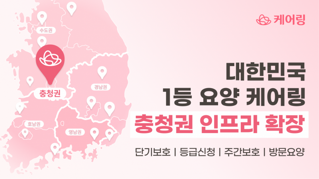 케어링은 이번 충청본부 신설로 강원권을 제외한 전국 통합재가 지역 인프라를 갖추게 됐다. 현재 서울 수도권, 영남권, 호남권, 충청권에서 주간보호센터 26개, 방문요양센터 24개, 요양보호사 교육원 4개, 복지용구센터 2개 등 총 56개 직영점을 운영하고 있으며 내년까지 100개 이상의 요양 인프라를 구축할 계획이다.