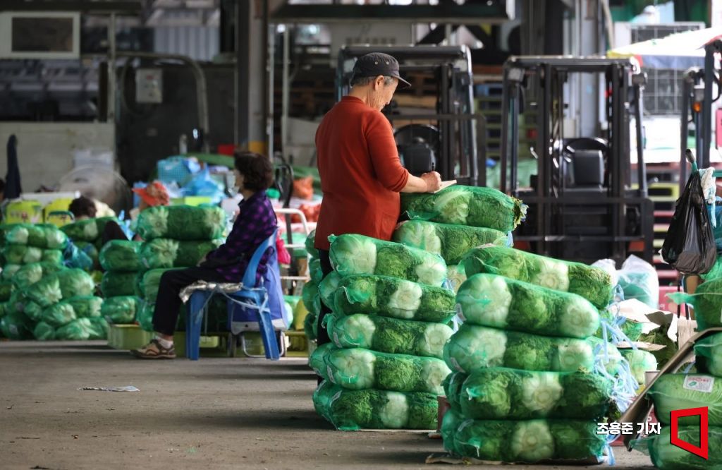 폭등하는 배춧값을 안정시키기 위해 중국에서 수입한 배추 초도 물량 16t(톤)이 국내에 반입된 27일 서울 송파구 가락시장에는 국내산 배추 수급량이 적어 썰렁한 모습을 보이고 있다. 사진=조용준 기자 jun 21@