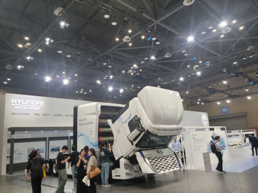 현대차그룹이 'H2미트 2024'에서 수소연료전지를 이용한 수소트럭을 전시하고 있다. 사진=강희종기자