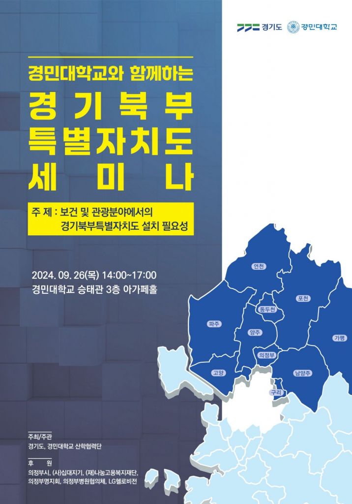 경기도와 경민대학교가 지난 26일 '경기북부특별자치도 설치'를 주제로 릴레이 세미나를 개최했다고 27일 밝혔다.