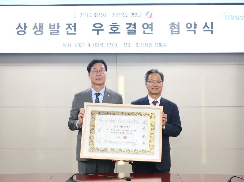 경기도 화성시는 26일 시청에서 경북 영양군과 우호결연 협약을 체결했다고 27일 밝혔다.
