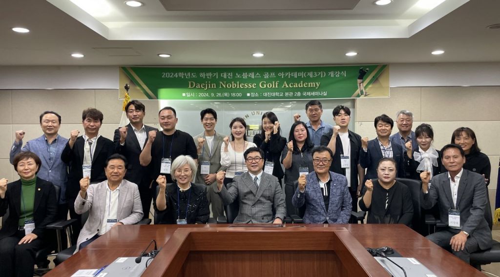대진대학교 산학능력개발원(원장 최경숙)은 지난 26일 대진대 본관 2층 국제세미나실에서 골프 티칭프로 전문인력 양성을 위한 ‘2024학년도 대진 노블레스 골프 아카데미(Daejin Noblesse Golf Academy)’ 제3기 개강식을 개최했다고 27일 밝혔다.