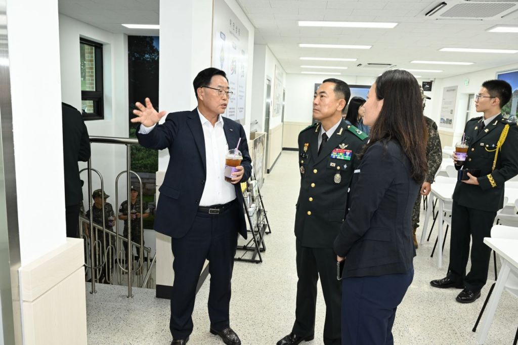강수현 양주시장이 27일 관내 봉양동에 소재한 5기갑여단을 방문해 ‘군부대 통합민원안내실’ 준공식을 마친 뒤 내부를 둘러보고 있다. <사진=양주시>