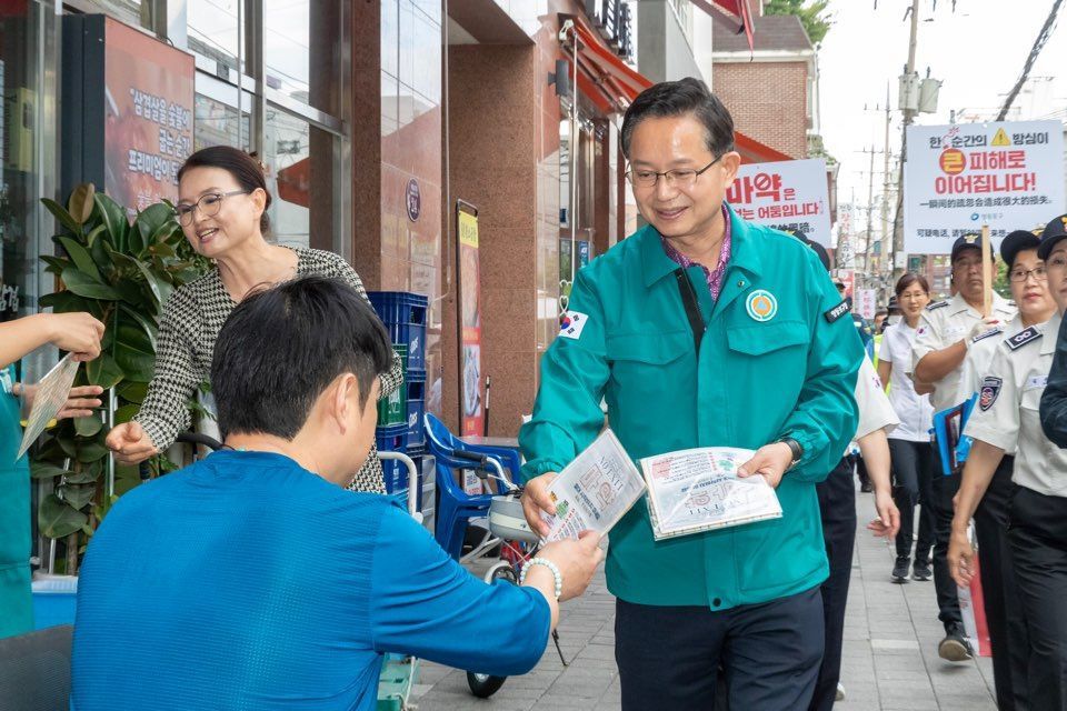 최호권 영등포구청장이 28일 오후 대림동 일대에서 ‘보이스피싱 예방 및 마약 근절’을 위한 캠페인을 진행했다.