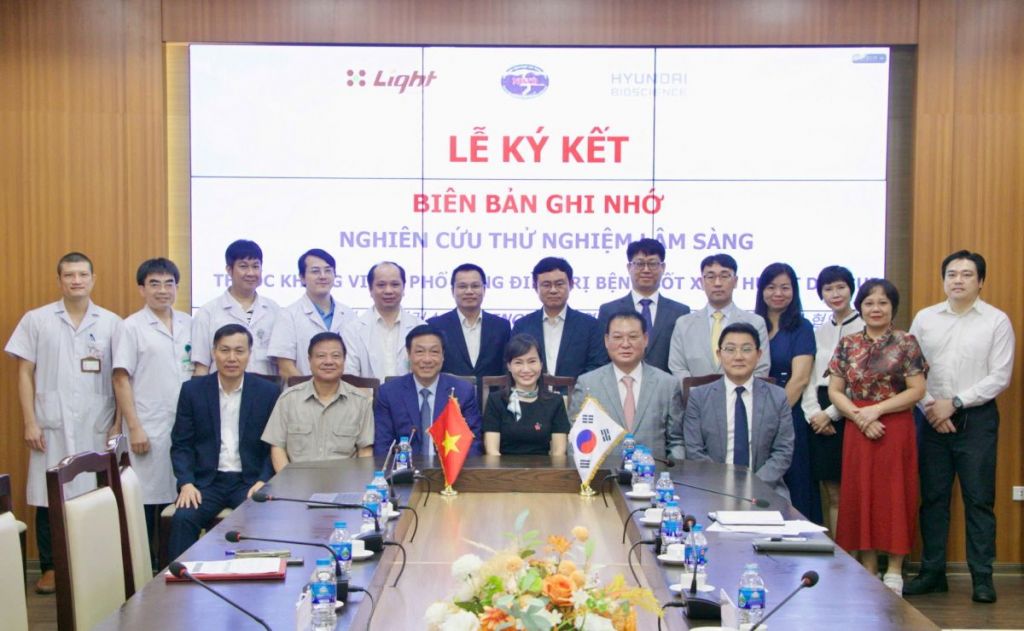 베트남 국립열대병병원 관계자와 현대바이오 관계자의 임상협약 체결 조인식 기념사진. /사진제공= 현대바이오