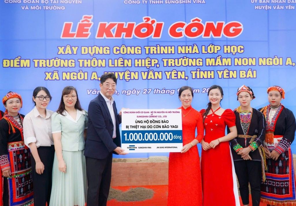 성신양회가 최근 태풍 ‘야기’로 피해를 입은 베트남의 복구를 지원하기 위해 10억 동을 기부하는 모습[사진 제공=성신양회]