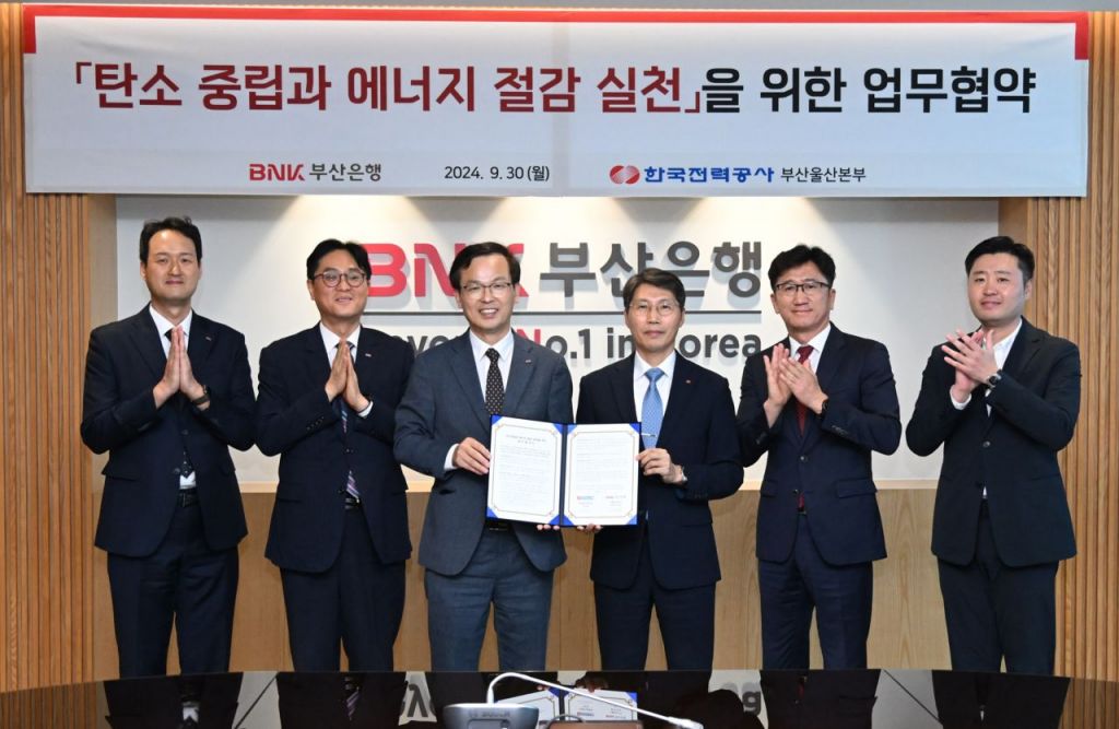 BNK부산은행(은행장 방성빈)이 한국전력 부산울산본부(본부장 이경윤)와 함께 기후변화에 대응하고 지속가능한 미래를 만들기 위해 손을 잡았다.