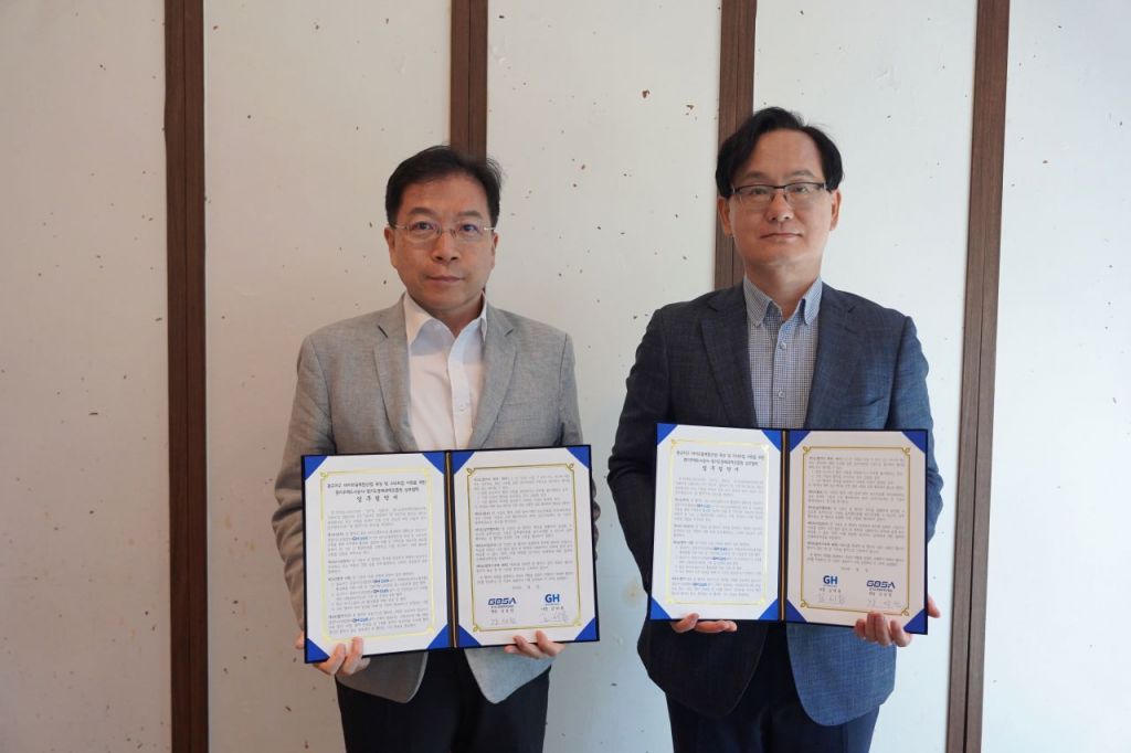 GH는 지난달 30일 수원의 한 음식점에서 광교지구 바이오융복합산업 육성 및 스타트업 지원을 위한 상호협력 업무협약(MOU)을 맺었다고 2일 밝혔다. 이날 업무 협약식에는 김세용 GH사장, 강성천 GBSA원장 등 주요 관계자들이 참석했다.