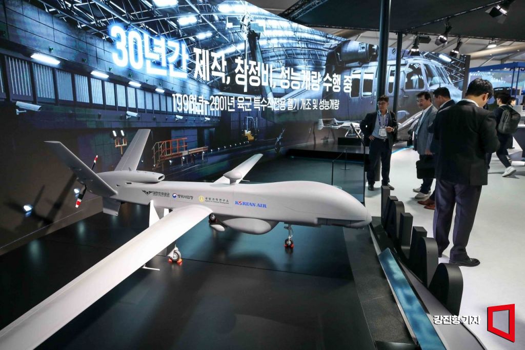 2일 충남 계룡대에서 열린 '대한민국 국제방위산업전시회'에서 대한항공의 고성능 전략 무인기가 전시돼 있다.