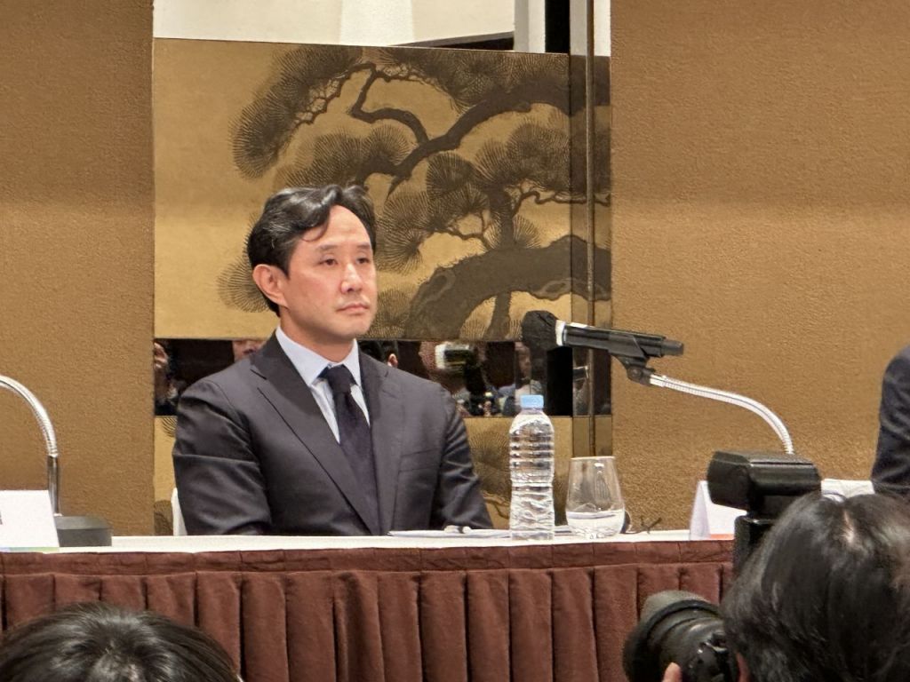 최윤범 고려아연 회장이 2일 오후 서울 용산구 그랜드하얏트 호텔에서 열린 기자회견에서 경영권 분쟁과 관련해 발언하고 있다. [사진=이성민 기자]