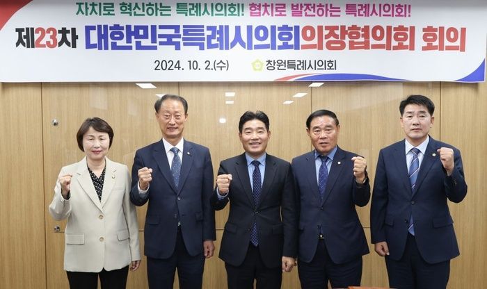 이날 정례회의에는 김운남 고양시의회 의장, 이재식 수원시의회 의장, 유진선 용인시의회 의장, 손태화 창원시의회 의장, 배정수 화성시의회 의장이 참석했다.
