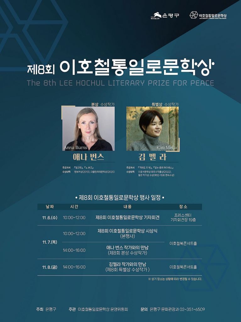 은평구는 ‘제8회 이호철 통일로 문학상 본상’ 기자회견은 11월 6일, 시상식은 7일, 부대행사는 8일 연속 개최된다.