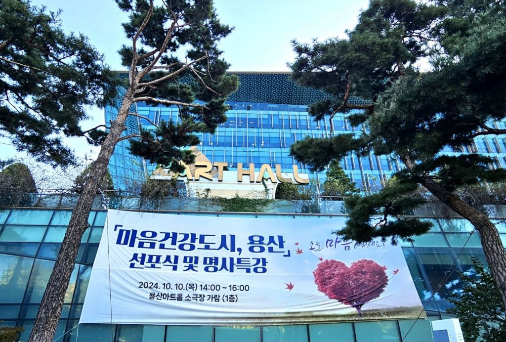 용산아트홀 입구에 마음건강도시 용산 선포식 현수막이 걸렸다. 용산구 제공.