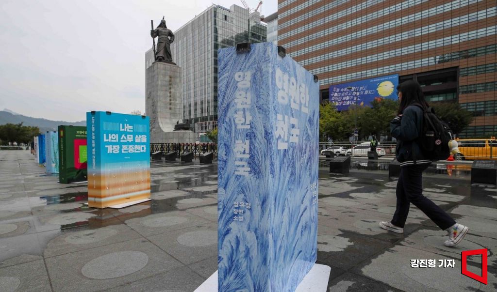 완연한 가을 날씨가 이어지고 있는 7일 서울 종로구 광화문 광장에 책을 소개하는 조형물이 설치돼 있다.