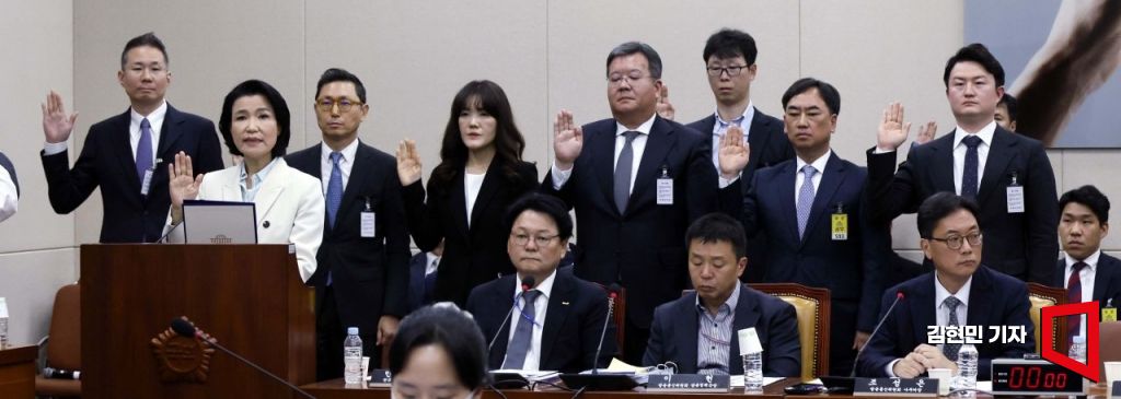 이진숙 방송통신위원회 위원장이 7일 국회 과학기술정보방송통신위원회에서 열린 방송통신위원회 등에 대한 국정감사에서 증인선서를 하고 있다. 사진=김현민 기자 kimhyun81@