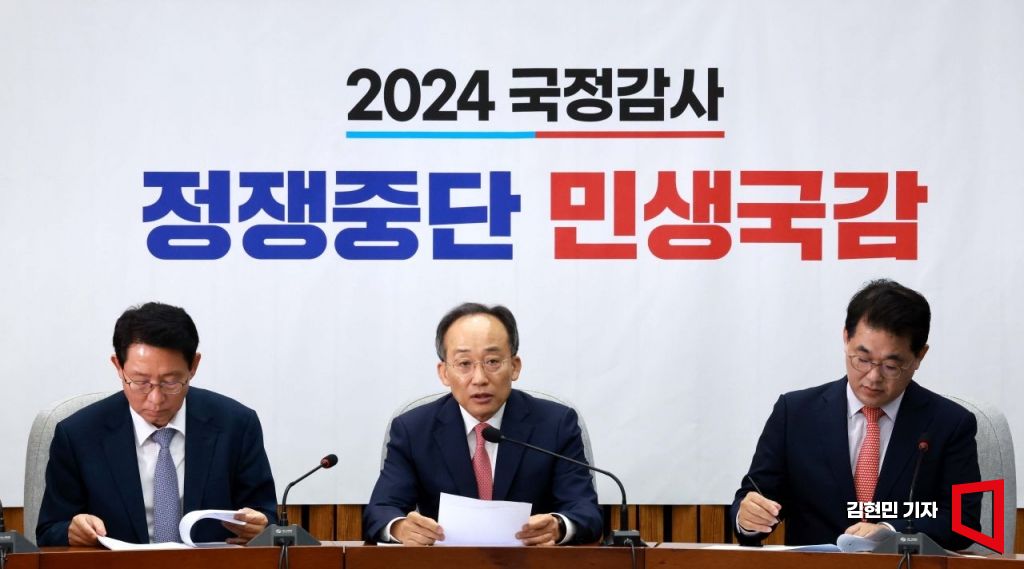 국민의힘과 더불어민주당은 이날 국감 시작 전 대책 회의를 열고 주도권 확보를 위한 장외 여론전을 펼쳤다. 박찬대 민주당 원내대표는 이날 국회에서 열린 제1차 국정감사 대책회의에서 "김 여사의 국정농단 의혹을 규명하기 위한 기존 특검과 함께 상설특검을 추진하겠다"고 밝혔다. 반면 추경호 국민의힘 원내대표는 국정감사 대책회의에서 "특검 폭주가 점입가경"이라고 반박했다. 민주당은 대통령과 그 가족이 연루된 위법 사건을 수사할 상설특검 후보자추천위원회에 여당이 참여할 수 없도록 하는 내용의 국회 규칙 개정안을 발의한 상태다.