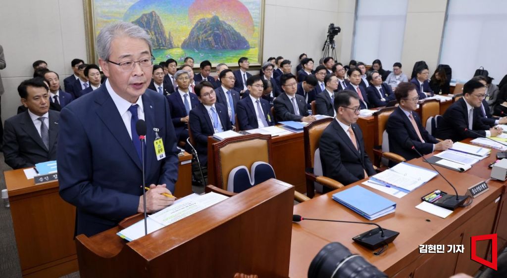 임종룡 우리금융지주 회장이 10일 국회에서 열린 정무위원회의 금융위원회와 산업은행 등에 대한 국정감사에서 증인으로 출석해 의원 질의에 답변하고 있다. 사진=김현민 기자 kimhyun81@