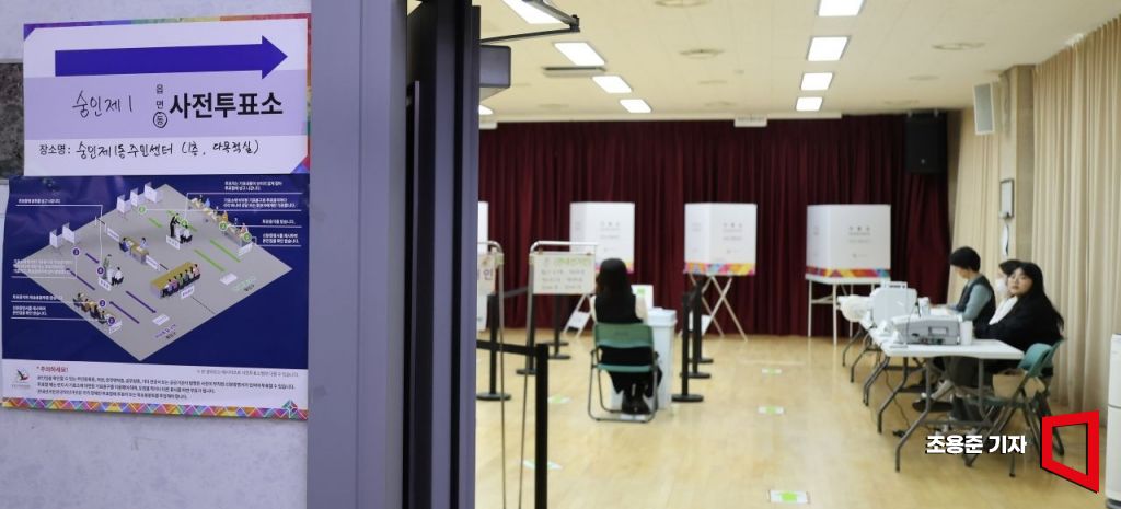 서울시교육감 보궐선거 사전투표가 시작된 11일 서울 종로 숭인1동주민센터에 마련된 사전투표소가 한산한 모습을 보이고 있다. 사진=조용준 기자 jun21@