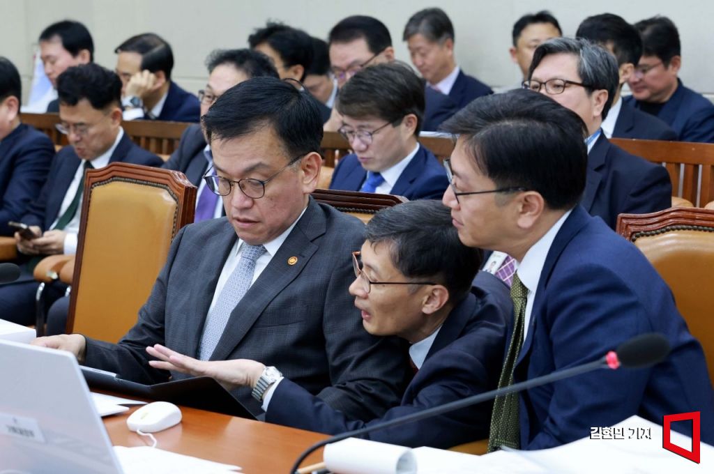 최상목 부총리 겸 기획재정부 장관이 11일 국회에서 열린 기획재정위원회의 기획재정부에 대한 국정감사에서 관계자의 보고를 받고 있다. 사진=김현민 기자 kimhyun81@