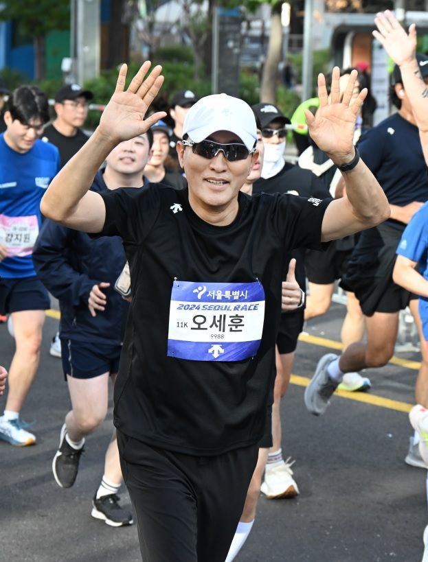 오세훈 서울시장이 13일 열린 '2024 서울달리기'에 참가하고 있다.[사진출처=서울시] [이미지출처=연합뉴스]