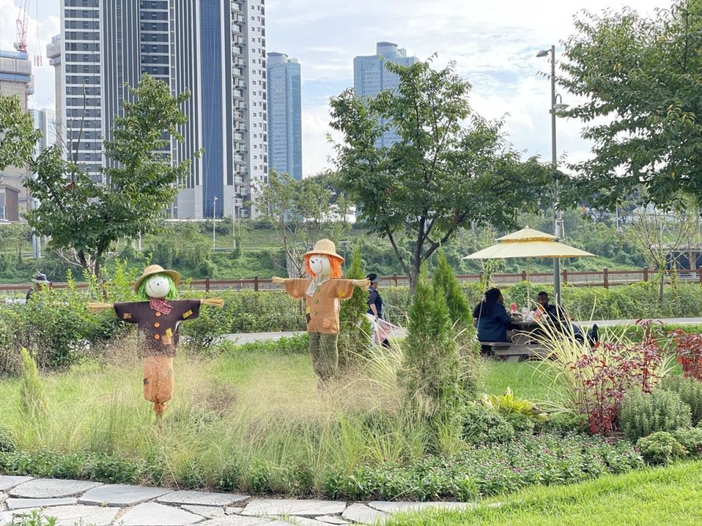 다양한 조형물과 화단으로 조성된 ‘중랑천 피크닉 정원’은 볼거리와 쉼 공간이 조화를 이루는 공간으로 가을을 대표하는 가든멈, 아스타 등 다양한 꽃을 심고, 정원사가 가꾼 성동열매마을을 주제로 도토리 등 조형물을 활용한 이색 공간을 만들었다.