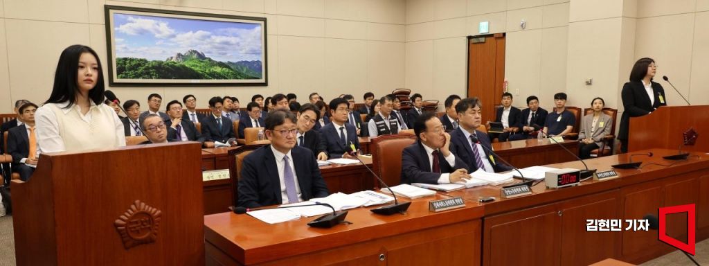 뉴진스 하니가 15일 국회에서 열린 환경노동위원회 국정감사에 참고인으로 출석해 발언하고 있다. 사진=김현민 기자 kimhyun81@