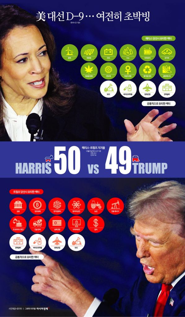 다음 달 5일 미국의 새 백악관 주인이 결정된다. 누가 대통령선거에서 승리하냐에 따라 산업·통상 전략과 각 산업 분야에서 희비가 엇갈릴 전망이다. 우리 기업들의 대응도 빨라질 것으로 보인다.