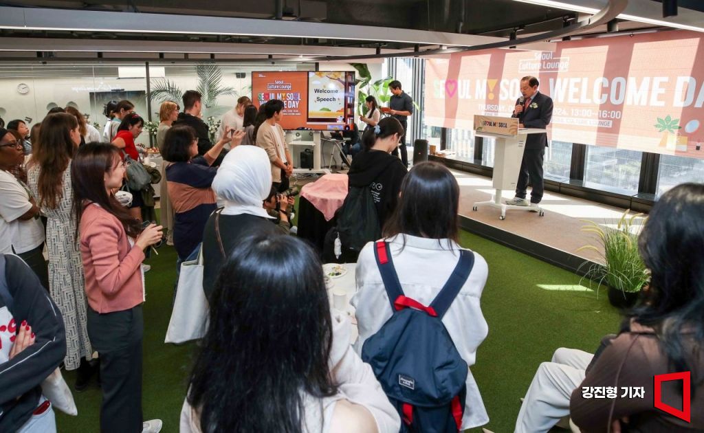길기연 서울관광재단 대표이사가 17일 서울 종로구 서울컬처라운지에서 열린 '2024 서울마이소울 웰컴데이'에서 환영사 하고 있다. 서울컬처라운지는 지난 6월 10일 개관한 이래 서울의 전통과 문화를 체험할 수 있는 공간으로 자리잡았으며, 특히 MZ세대 외국인 관광객들 사이에서 큰 인기를 끌며, 누적 방문객 6천명을 돌파 했다.