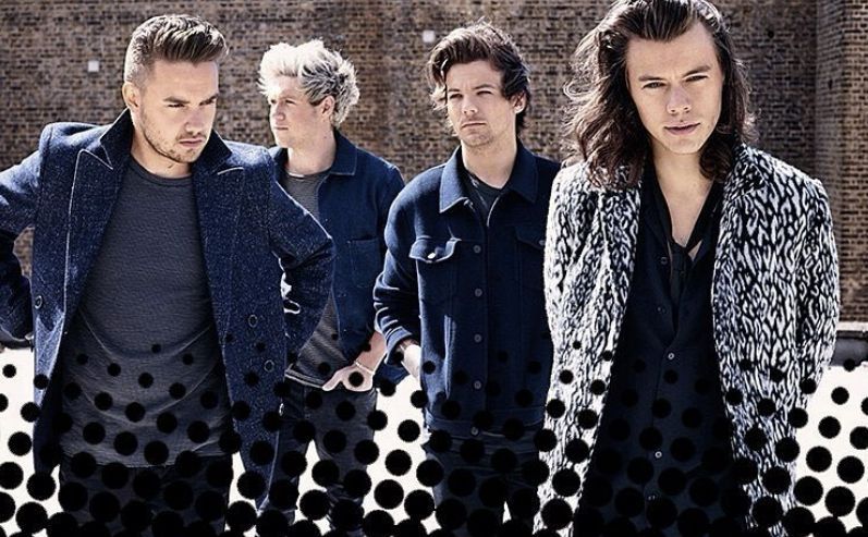 원 디렉션 공식 홈페이지에 소개된 원 디렉션 사진. 왼쪽부터 해리 스타일스, 나일 호란, 사망한 리암 페인, 루이스 톰린슨