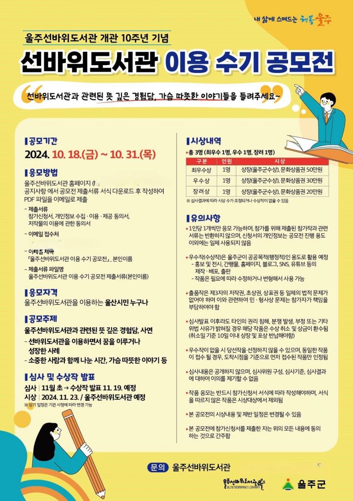 공모전에 대한 자세한 사항은 울주통합도서관 홈페이지에서 확인할 수 있다.