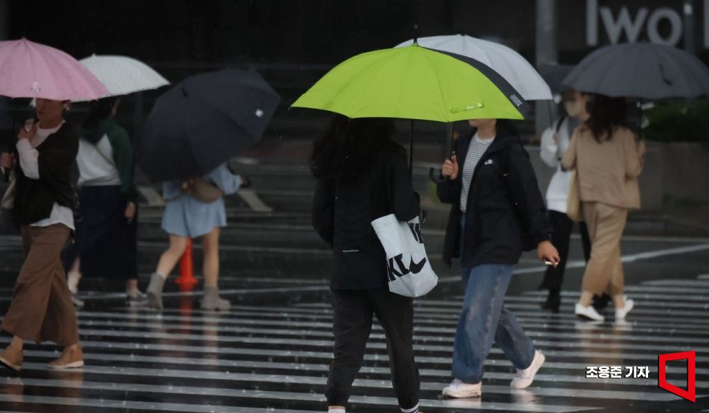 서울을 비롯해 전국적으로 많은 양의 가을비가 내린 18일 서울 여의도에서 시민들이 우산을 쓴 채 걸어가고 있다. 사진=조용준 기자