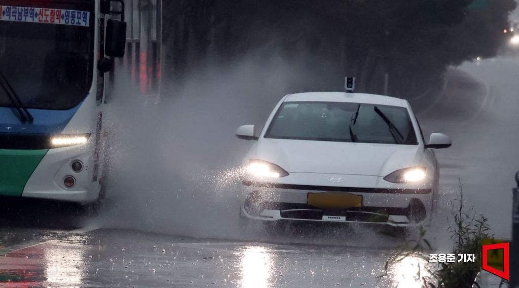 [포토] 물보라 일으키며 달리는 차량