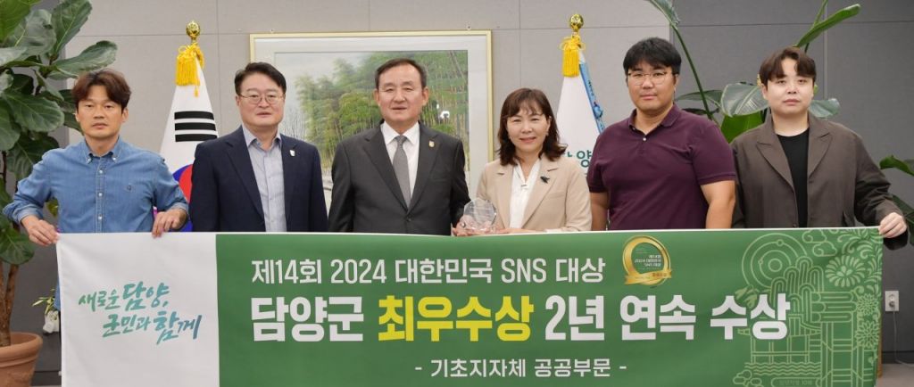 담양군은 지난 17일 열린 ‘제13회 대한민국 SNS 대상’에서 기초지자체 부문 최우수상을 받으며 2년 연속 수상하는 쾌거를 거뒀다고 18일 밝혔다.