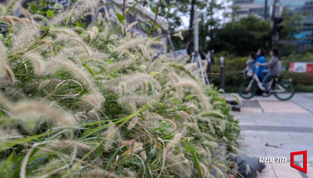 완연한 가을 날씨가 이어지고 있는 7일 서울 종로구 청계광장에 수크령이 자라고 있다. 사진=강진형 기자aymsdream@