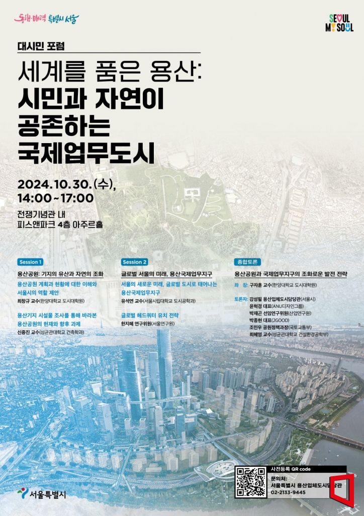 서울시는 오는 30일 전쟁기념관 내 피스앤파크에서 '세계를 품은 용산, 시민과 자연이 공존하는 국제업무도시'를 주제로 포럼을 연다고 20일 밝혔다.