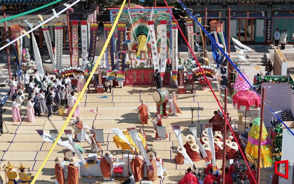 20일 서울 은평구 진관사 대웅전 야단법석에서 ‘수륙재 개건 626주년 기념 2024 진관사 국행수륙재’가 봉행됐다. 비구니 스님들이 국가와 국민을 위해 헌신하다 희생한 군인,경찰,소방 공무원 등 제복공무원들의 넋을 기리고 국민들의 평안과 건강을 기원하며 천수바라 춤을 추고 있다. 수륙재는 국가의 안녕과 국민의 평안을 기원하는 불교의식으로 국가무형유산으로 지정되어 있다. 사진=진관사