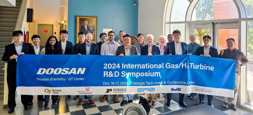 16일(현지 시간)부터 이틀간 미국 애틀랜타에 위치한 조지아 공과대학교(Georgia Tech)에서 진행된 심포지엄에서 두산에너빌리티는 가스터빈과 수소터빈 개발 현황을 소개하고, 미국 주요 대학과 진행한 수소터빈 연소기 노즐 개발 성과를 발표했다. 두산에너빌리티의 미국 가스터빈 서비스사업 자회사인 DTS(Doosan Turbomachinery Services)는 F클래스(가스터빈 입구 온도 약 1300~1400℃인 모델) 수소 혼소 연소기 및 고온부품 재생정비 사례를 소개했다.
