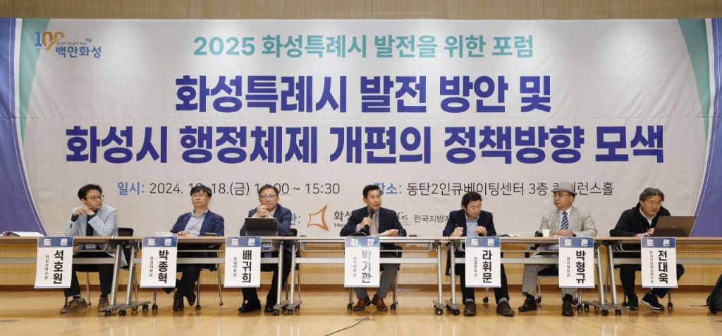 경기도 화성시는 내년 특례시 출범을 앞두고 특례시의 위상 제고와 발전 방향, 행정체계 개편 방안을 모색하기 위한 '2025 화성특례시 발전을 위한 포럼'을 18일 화성 동탄2인큐베이팅센터 컨퍼런스홀에서 개최했다.