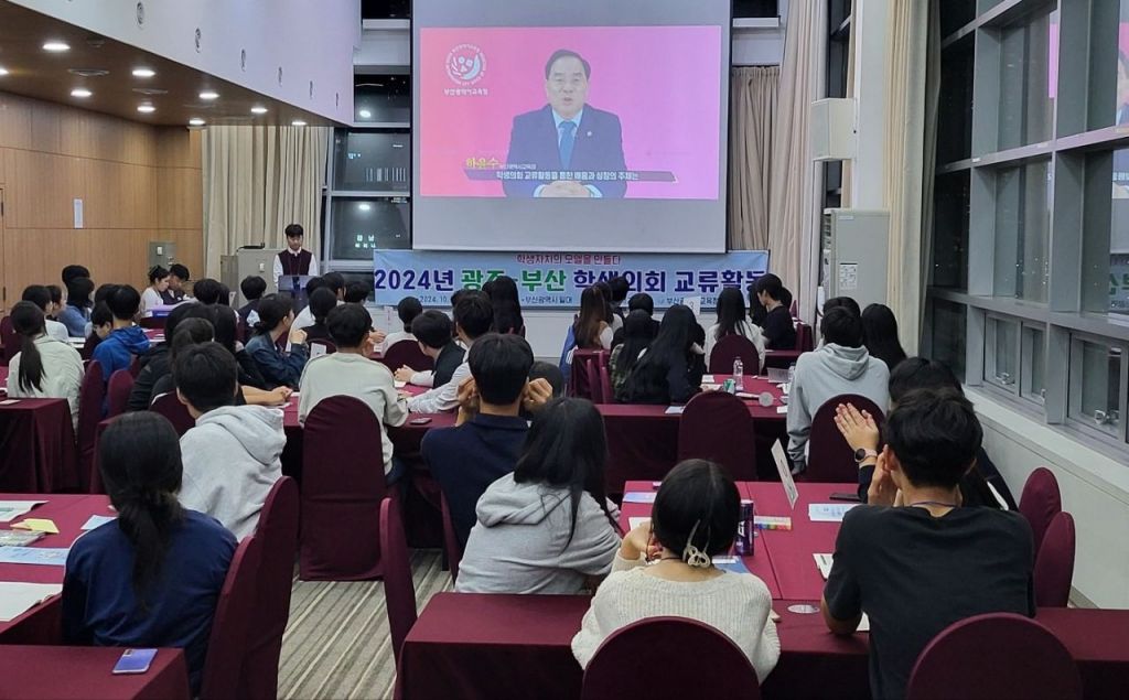 부산시교육청(교육감 하윤수)은 지난 18일부터 1박 2일간 부산도시공사 아르피나 등에서 부산·광주 학생의원 70여명이 교류 활동에 나섰다고 22일 전했다.