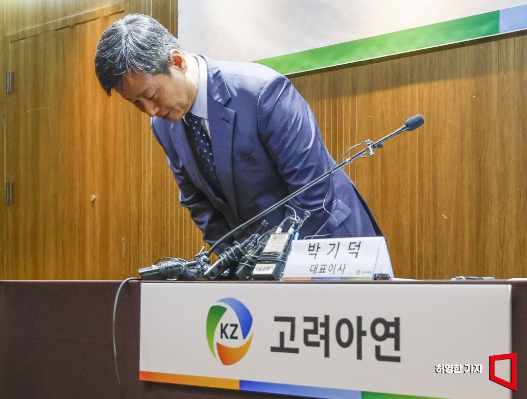 박기덕 고려아연 대표가 22일 서울 코리아나호텔에서 기자회견을 열고 영풍과 MBK파트너스가 제기한 고려아연의 자기주식 공개매수 절차 중지 가처분 신청이 기각된 것 등 경영권 분쟁에 대한 입장을 밝혔다. 박 대표가 회견장에 들어와 인사하고 있다. (공동취재)