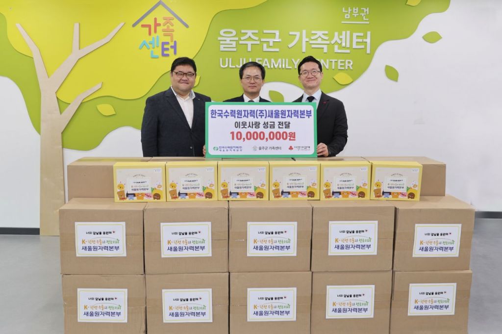 한국수력원자력 새울원자력본부는 22일 울주군 남부권 가족센터에서 다문화가족 자녀를 위한 도서·교구 지원 사업비 총 1000만원을 울산사회복지공동모금회로 지원했다.