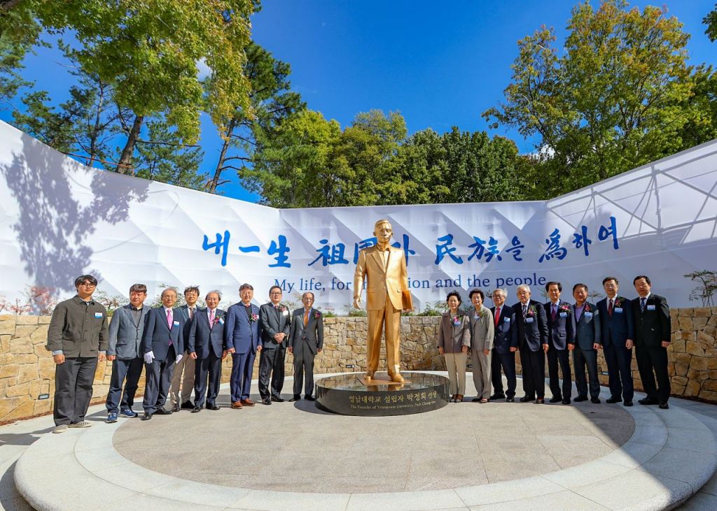 최외출 영남대 총장은 “가난과 좌절, 희망이 보이지 않던 시절 민족중흥의 동량을 양성하기 위해 영남대를 설립하신 박정희 대통령의 동상 제막식을 개교 77주년을 맞는 뜻깊은 해에 진행하게 되어 감격스럽다. 최근 노벨경제학상을 받은 학자가 ‘박정희 발전 모델’이 다른 나라들의 경제 발전 정책에 큰 영감을 준다고 찬사를 보낸 것은 우리에게 큰 자랑이다. 설립자의 철학과 지향 가치를 기념하는 것을 넘어 그 정신을 이어가는 노력이 바로 영남대학교의 정체성이다”고 말했다.