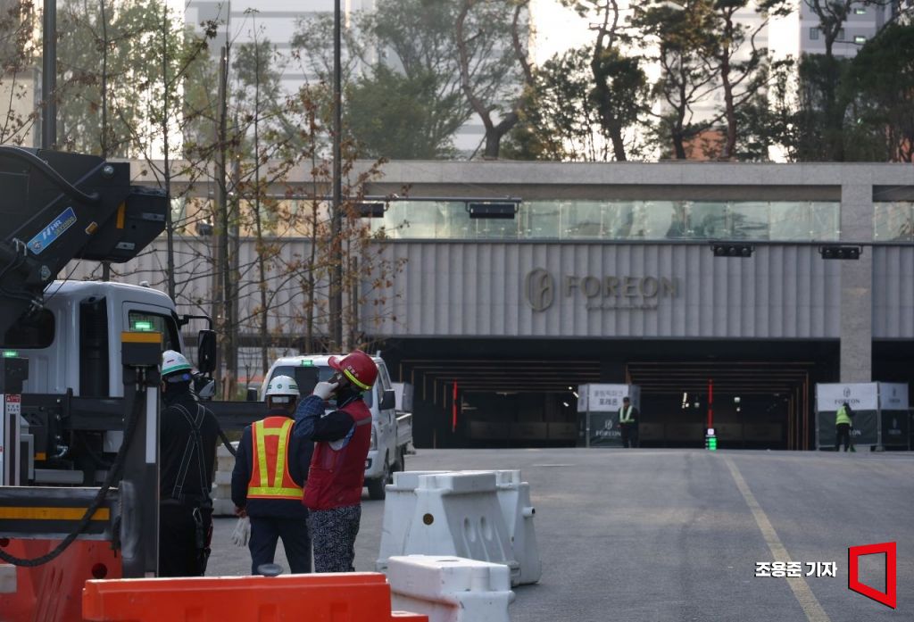 내달 입주를 앞두고 공사비 갈등이 심화해 공사가 멈췄던 서울시 강동구 둔촌동 '올림픽파크포레온' 사업이 다시 시작된 25일 강동구 올림픽파크포레온 사업현장에서 공사가 재개되고 있다.