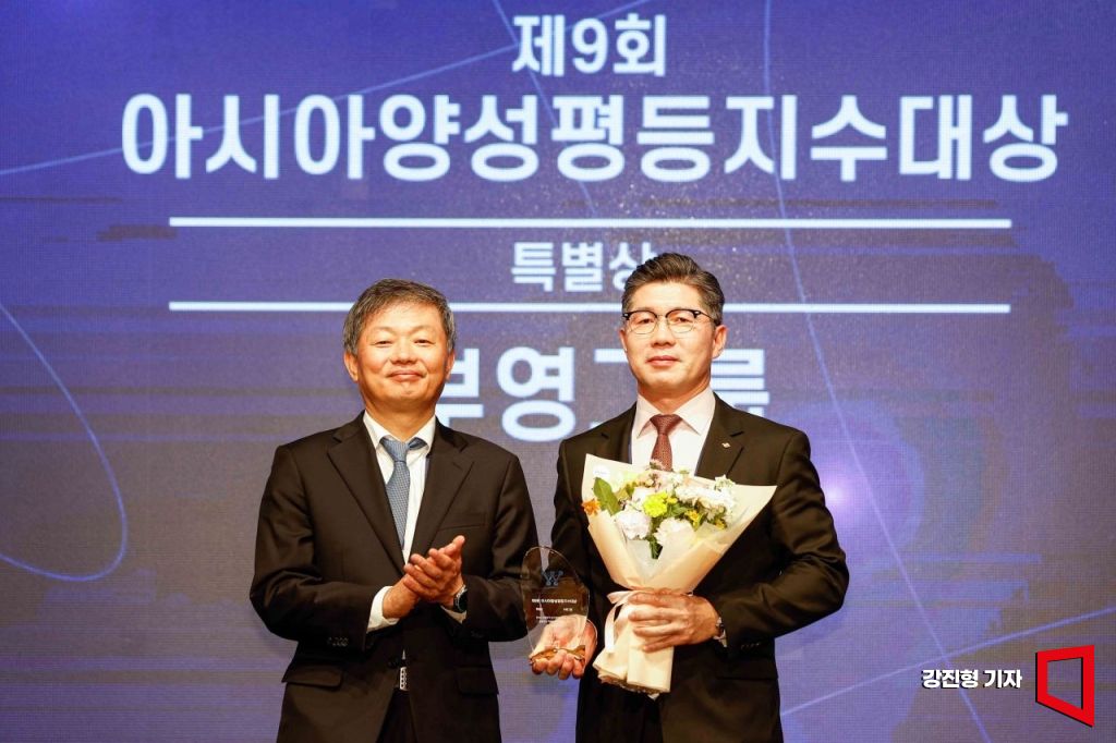 제9회 아시아양성평등지수대상 시상식에서 아시아경제 대표상 특별상을 받은 부영그룹은 선도적으로 출산장려지원금을 임직원에게 지급하는 등 출산 독려를 위해 노력하고 있다. 이중근 부영그룹 회장은 지난 2월 2021~2023년 출산한 임직원 66명의 자녀 70명에게 1인당 1억원씩 총 70억원의 출산장려지원금을 지급했다. 다둥이나 연년생을 낳은 임직원에게는 각 2억원을 지급했다.
