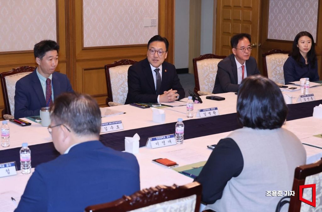 김병환 금융위원회 위원장이 28일 서울 종로구 정부서울청사에서 열린 7개 대학 소비자학과 교수 등과의 간담회에 참석, 발언하고 있다.