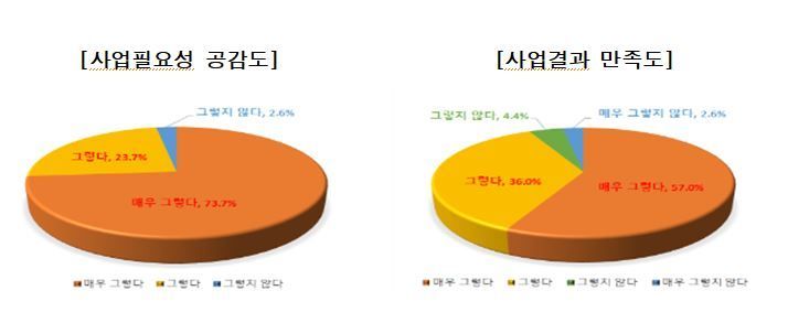 두 항목 모두 전년 조사 결과 대비 사업의 필요성은 10.4% 상승, 만족도는 6% 상승하였는데 협업 추진을 통한 사업 시너지 효과, 진입도로 확보, 건축물 저촉 해소 등에 따른 효과가 나타난 것으로 보인다.