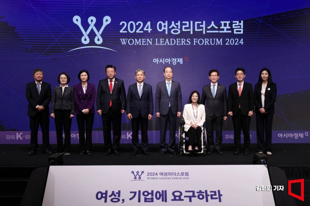 한덕수 국무총리(왼쪽 여섯번째)와 현상순 아시아경제 회장(왼쪽 다섯번째)을 비롯한 참석자들이 30일 서울 소공동 롯데호텔에서 아시아경제 주최로 열린 2024 여성리더스포럼에서 기념촬영을 하고 있다. 김현민 기자