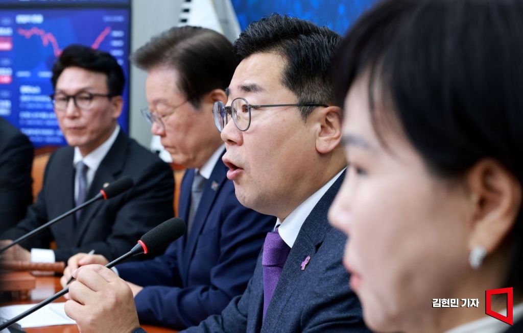 박찬대 더불어민주당 원내대표가 28일 국회에서 열린 최고위원회의에서 발언하고 있다.